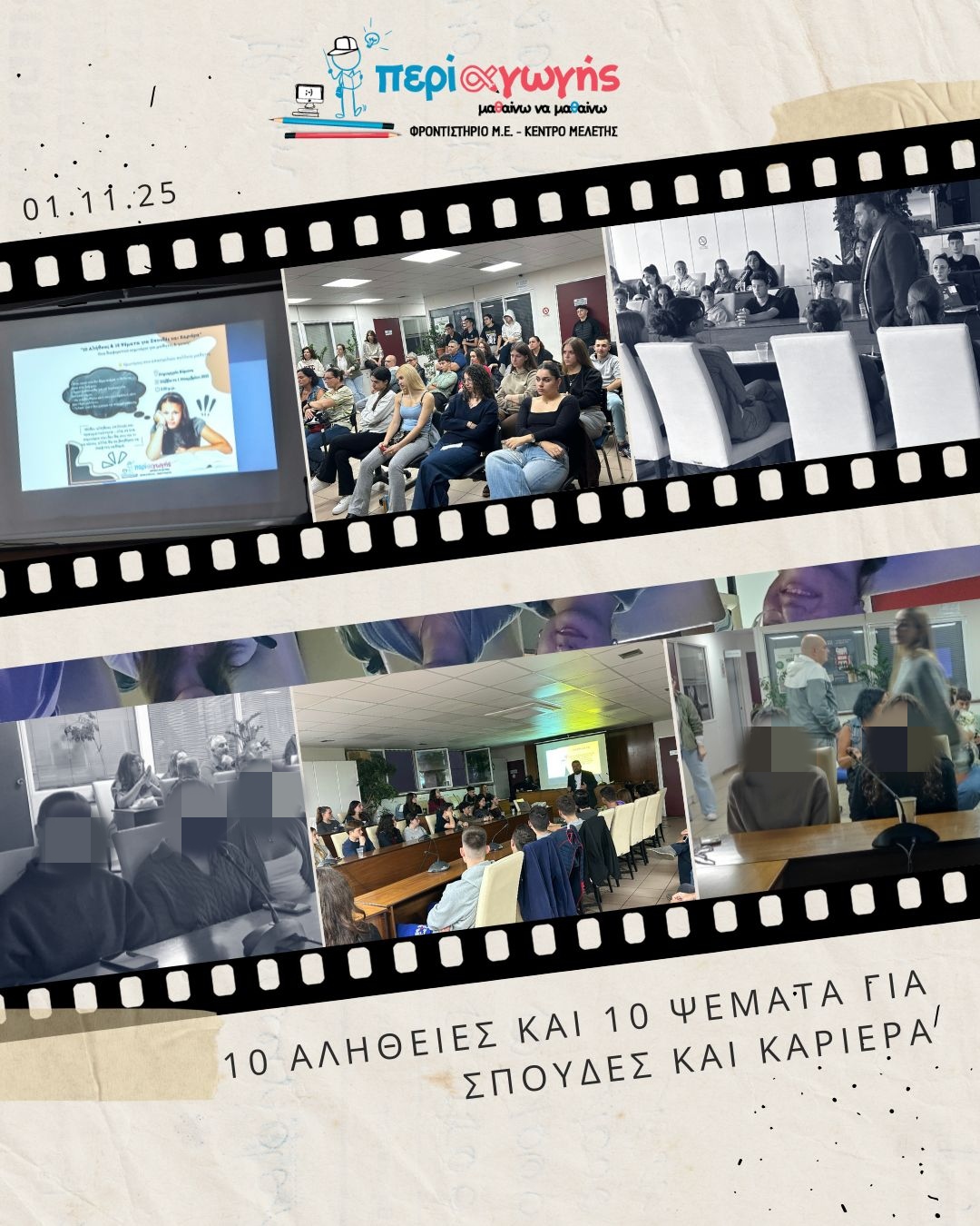 Πραγματοποιήθηκε το σεμινάριο “10 Αλήθειες και 10 ψέματα για σπουδές και καριέρα”